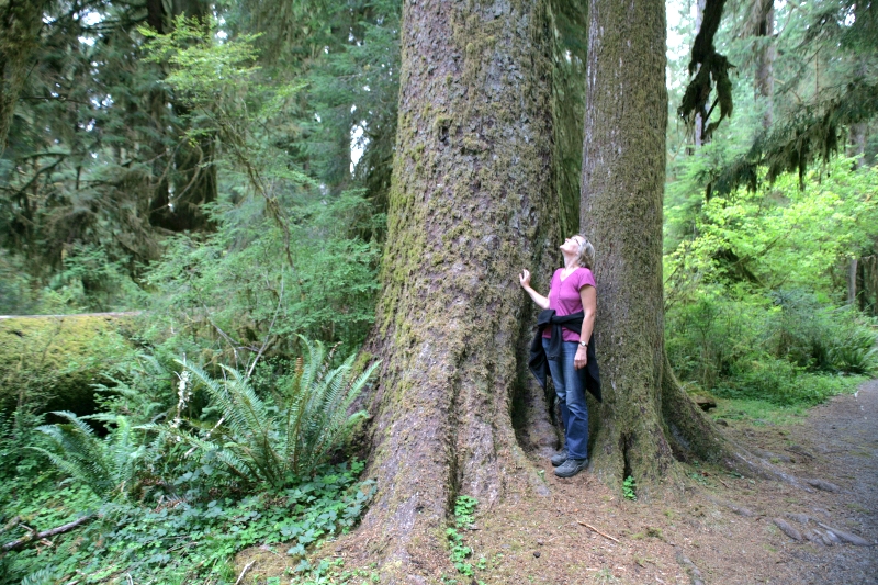 Wir fahren das Hoh-Valley hinauf in den Regenwald der olympischen Berge und bekommen einen Vorgeschmack auf die richtig großen Bäume. Schon hier sind die Stämme auf 60 Meter Höhe fast gleich dick und die Bäume erreichen über 90 Meter Höhe. Bei einem umgefallenen, nicht ganz so großen Exemplar zählen wir an die 200 Jahresringe. Die Wege führen aber auch in ein Reich von Farnen und Moosen. Der Campingplatz im Hoh-Rain-Forest ist erstaunlich gut belegt. Morgen ist Labour-Day und den freien Tag nutzen noch viele zu einem langen Wochenende.
