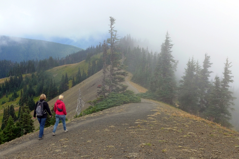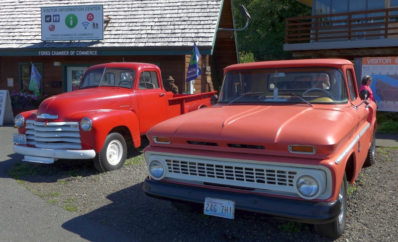 Port Angeles wirbt mit einer historischen Waterfront, aber höchstens ein Haus ist richtig alt. Spontan enscheiden wir uns für den Wal-Mart als Übernachtungsplatz. Es regnet und es ist schon spät. Und dann passiert das fast Unmögliche: Andrea und Jonas, die wir schon bei der Fahrzeugabholung in Halifax getroffen hatten, parken neben uns ein! Die beiden hatten eine völlig andere Route, waren noch bis nach Alaska hinauf und sind gerade mit der Fähre in Port Angeles angekommen, nicht über Port Townsend. Das gibt es doch gar nicht! Der Kontinent ist so groß und hat so viele Möglichkeiten! Der Nacht wird kurz und am Morgen setzen wir die Gespräche beim Frühstück fort. Dann unternehmen wir eine gemeinsame Fahrt und Wanderung im Olympic Nationalparc. Da die beiden am Abend eine Einladung zu einem VW-Bus-Trefffen in der Nähe bekommen haben und wir noch nach Westen in den olympischen Regenwald wollen, geht es gesondert weiter.