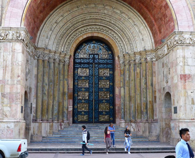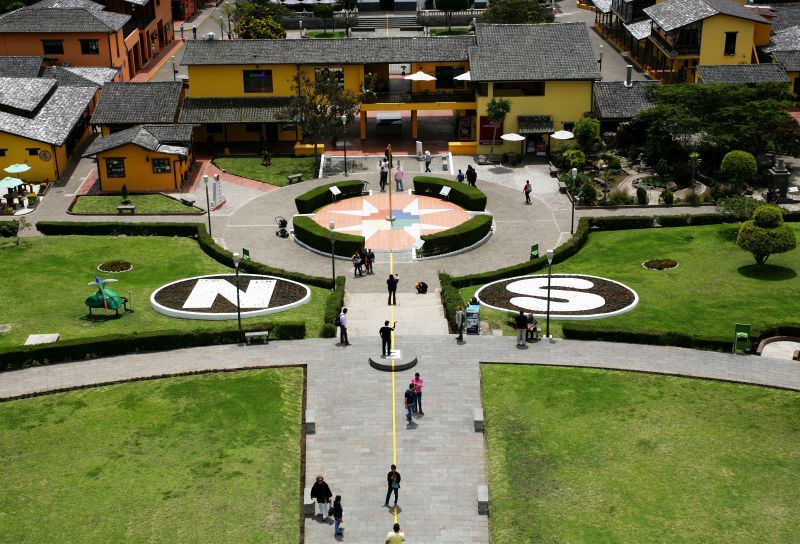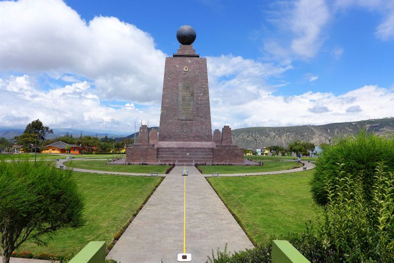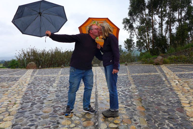 Zum ersten Mal erreichen wir die Mitte der Welt, "Mitad del Mundo". Der Äquator! Allerdings regnet es und wir warten etwas mit dem Besuch der gepflasterten Sonnenuhr. Da wir uns bereits auf der Südhalbkugel befinden, begehen wir diesen Moment gleich mit einer kleinen Obsttorte! Jenseits von Quito, aber wieder nach Norden hinaus befindet sich das große "Mitad del Mundo" mit Äquatordenkmal und zusätzlichen Museen und Informationen. Dort begehen wir den Äquatorbesuch ein weiteres Mal.