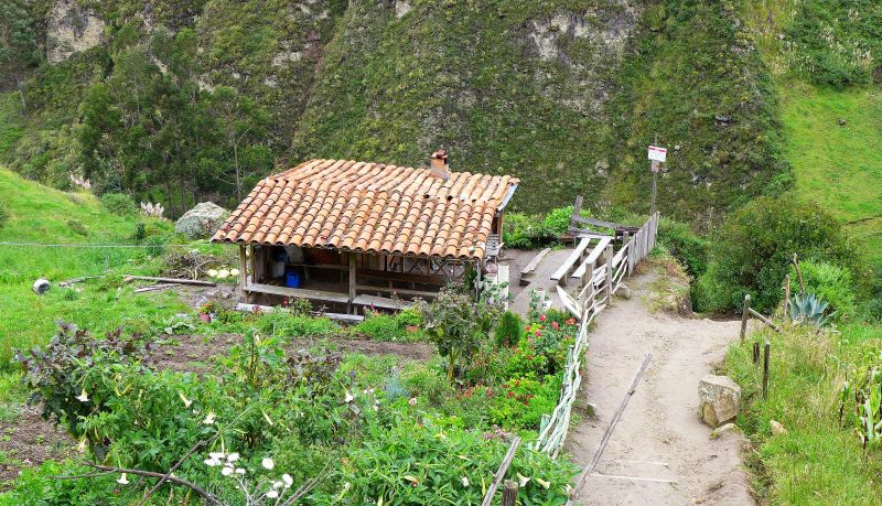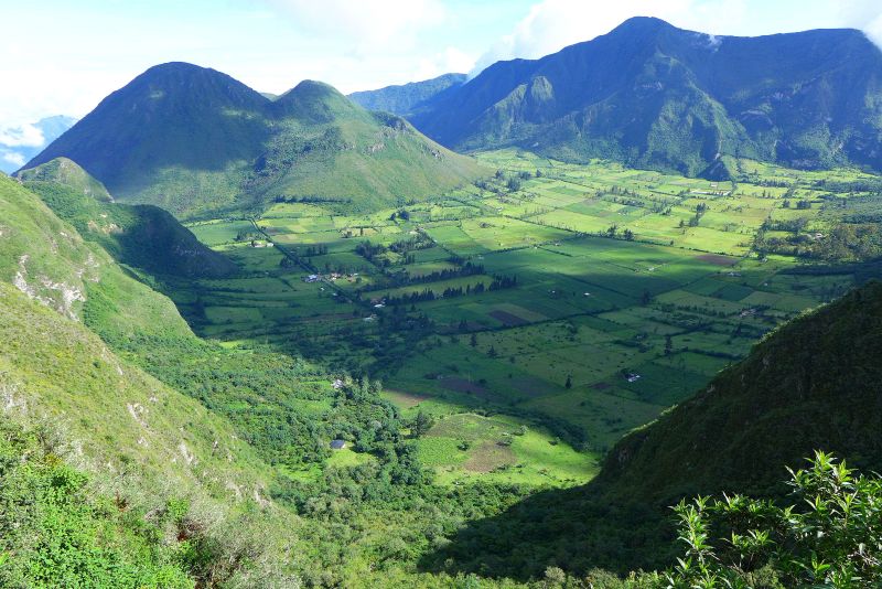 Der Aussichtspunkt zum Vulkankrater "Pululahua" ist mit wenigen Schritten erreichbar und bietet einen fantastischen Blick hinein in den grünen Krater. Die Erde dort ist scheinbar so fruchtbar, dass jedes Fleckchen landwirtschaftlich genutzt wird.