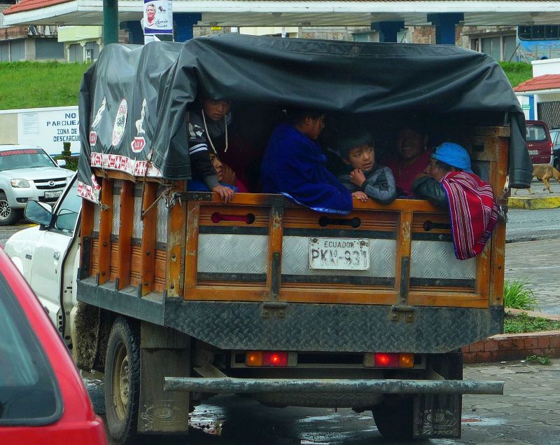In und um Otavalo treffen wir auf sehr aufgeschlossenene, freundliche Menschen. Die Leute machen einen fröhlichen Eindruck und lächeln uns an. Das dauernde Zuwinken ist uns schon aus Kolumbien bekannt. Die Menschen treiben auf öffentlich angelegten Plätzen sehr viel Sport. Um halb sieben geht es in der Woche los. Da wir an einem Sportzentrum übernachtet haben, werden wir wach, als sich schon Hunderte zu den Rhythmen der Vortänzerin bewegen. Auf dem berühmten Handwerksmarkt werden traditionelle und moderne Waren angeboten. In den Panaderias kosten wir von den köstlichen Obsttorten und dem leckeren Gebäck. Ach ja, unser Tank ist inzwischen zu zwei Dritteln leer und wir tanken 112 Liter bei 1,037 Dollar pro Gallone (3,785 Liter) nach! Rechnet das mal bitte in Euro!
