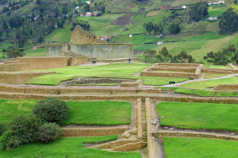 Ingapirca ist Ecuadors bedeutendste Ausgrabungsstätte. Das Gelände ist klein und übersichtlich. Neben Mond- und Sonnentempel sehen wir die Gärten, Wohnhäuser der höher gestellten und den Inca-Trail, der mitten durch Ingapirka verläuft. Wir haben eine Privatführung mit Christian, der Spanisch, Englisch und Quichua spricht. Durch ihn erfahren wir Vieles über die noch heute lebendige Kultur und Denkweise der Inca und Canari. Von seinen Vorfahren hat der moderne, junge Mann sein Wissen um die Zusammenhänge zwischen den Gestirnen geerbt. Dass die Inca alle paar Jahre eine der im Tempel lebenden Jungfrauen geopfert haben, davon hält er allerdings auch nicht viel. Gefäßfunde in Form fröhlicher Menschen mit lachenden Gesichtern zeugen davon, dass das Leben damals sicher sehr hart war, aber auch Platz für Humor hatte. Und das ist vermutlich immer noch so!