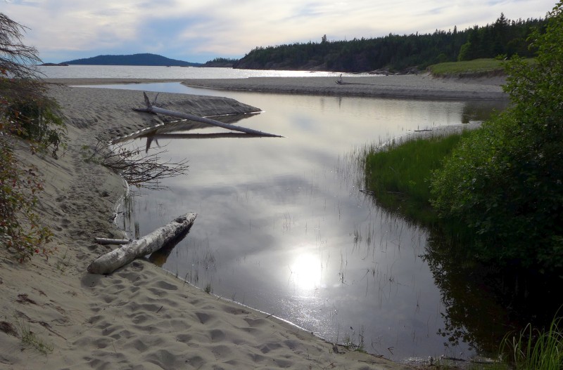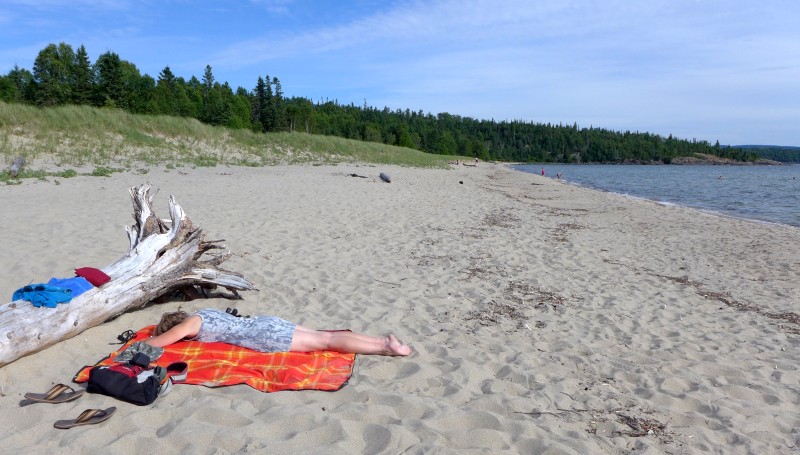 Nicht, dass wir jemals nach Wawa wollten - geschweige denn, dass wir je von einem so genannten Ort gehört hätten - jedenfalls sind wir jetzt Gans in der Nähe von Wawa am "Sandy Beach" angekommen. Gans ist übrigens genau so richtig geschrieben, weil als Hauptattraktion von Wawa eine zur Fertigstellung des Trans Canada Highway 1960 errrichteten Landmarke in Form einer Gans ist. Niemand kommt hier ohne ein Foto mit dieser Gans vorbei.