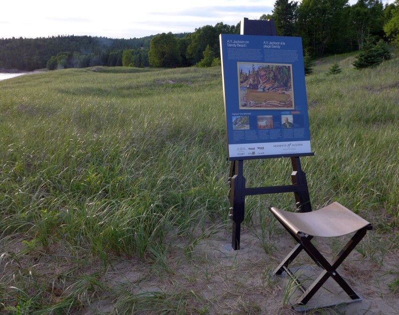 Bei Wawa angekommen, haben wir nach einer Wanderung über einen Trail zu den "Magpie High Falls" erstmal auf einem schönen Platz hinter dem Strand niedergelassen. Hier in Wawa machen die Leute komische Sachen. Der Frühjahresbeginn wird hier mit einer besonderen "Uhr" ermittelt. Die fahren im Winter ein altes, schmuckes Auto auf den gefrorenen Lake Wawa und jeder kann wetten, wann das Auto versunken sein wird. Dann ist es Frühjahr!