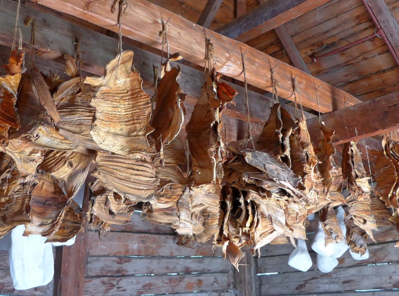 Nun folgt der geschichtliche Teil. Fort St. James war einst die Metropole des Pelztierhandels. Von hier aus wurde der europäische Hunger nach den begehrten Fellen gestillt. Allerdings gab es zuvor noch lange und gefährliche Wege quer durch den Kontinent und über Ozeane zu bewältigen. DIese dauerten meist mehrere Monate. Kostümierte Darsteller erzählen plastisch über die Pelze, die Routen, den Warenhandel und das Leben im 19. Jahrhundert. Waren wurden in Biberpelzen ausgezeichnet. Aus diesem wurden damals die feinen Hüte hergestellt. Hoher Aufwand wurden betrieben, um neue Routen zu erkunden. Für so eine Entdeckung fiel dann schon mal als Belohnung ein Flussname oder sogar ein bequemer Verwaltungsposten ab. Spaß hatte damals auch sinen Platz. Hühnerrenne wurden in Ermangelung an Pferden dazu abgehalten. War der Winter streng und hatte man keine Lust mehr auf den harten, getrockneten Lachs, wurde es allerdings mit dem Hühnerrennen schwierig.