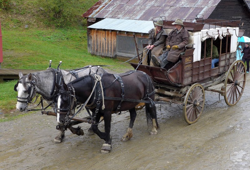 Südöstlich von Prince George schließt sich das Cariboo-Gebirge an. Als dort Mitte des 19. Jahrhunderts der erste Klumpen Gold gefunden wurde, zog es neben Vertretern der britischen Krone auch reichlich Abenteurer in das damals noch nicht zu Kanada gehörende British Columbia. Barkerville war einer der Hauptorte, wo die Schürfer ihre Claims markierten. Im dort fließenden Williams Creek erprobte man immer tollere Maschinen, um an das Edelmetall zu kommen. Hier fand man eine besonders reine Qualität. Barkerville ist stolz darauf, heute immer noch lebendig zu sein. Gesorgt wird dafür von kostümierten Schauspielern, die gut recherchierte Geschichten in unterschiedlicher Form darbieten. Hier werden Claims verkauft, dort gibt es Zoff auf der Straße, da eine Gerichtsverhandlung oder einfach eine Stadtführung in der Zeit von 1852. Hut ab! Die 80 km lange Stichstraße in die Berge hat sich gelohnt! Die Szenerie ist gut für einen ganzen Tag! Ab hier südwärts haben wir es mit lauter Orte zu tun, die sich auf den Weg der Goldsucher beziehen. Von Lillooet aus wurde in Meilen gemessen, also heißen kosequenter Weise Orte "150 Mile House", "108 Mile Ranch", "100 Mile House", "93 Mile", "70 Mile House" usw. Straßen und Flüsse werden zum Teil nach dem selben Schema benannt. Dann die Meile 0: Lillooet. Im einst florierenden Ort nehmen wir eine gewisse Trostlosigkeit wahr. Auch die deutsche Bäckerei, die in verschiedenen Reiseführern erwähnt wird, ist zu!
