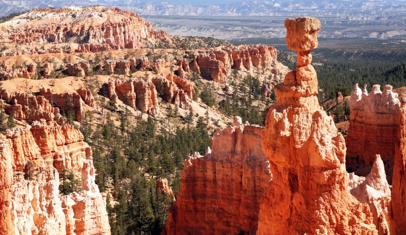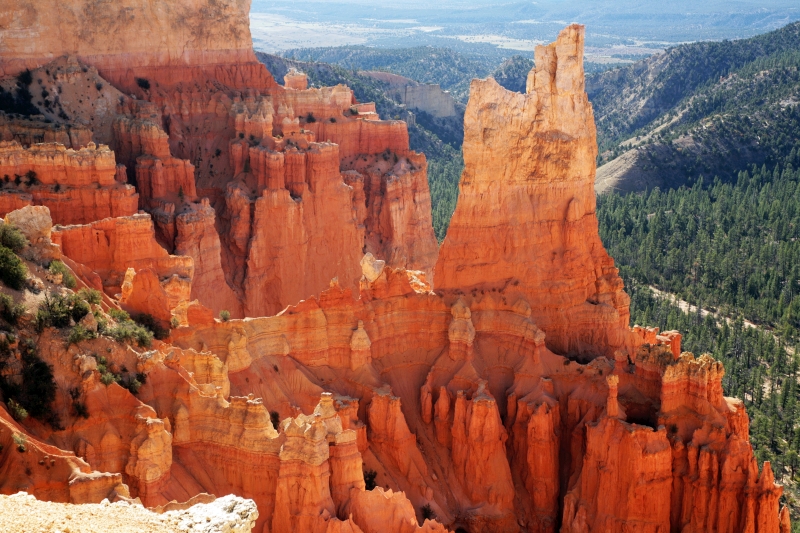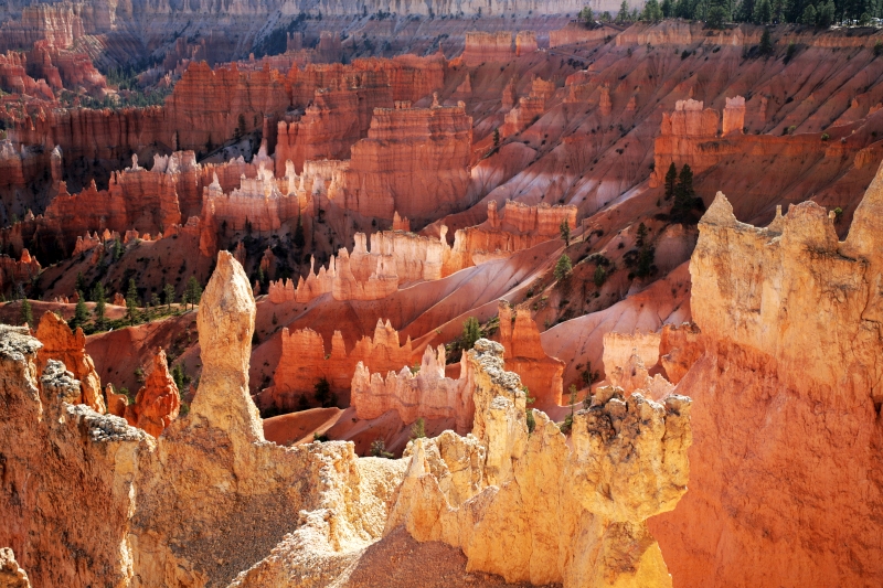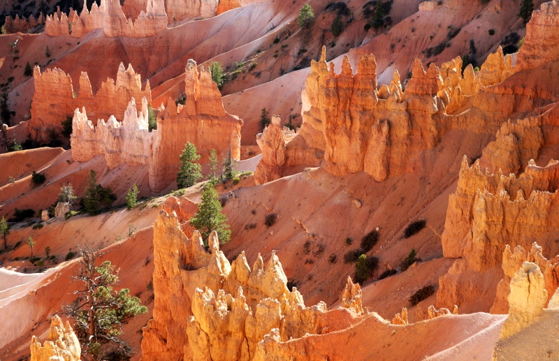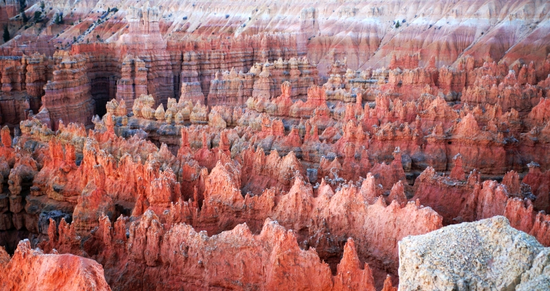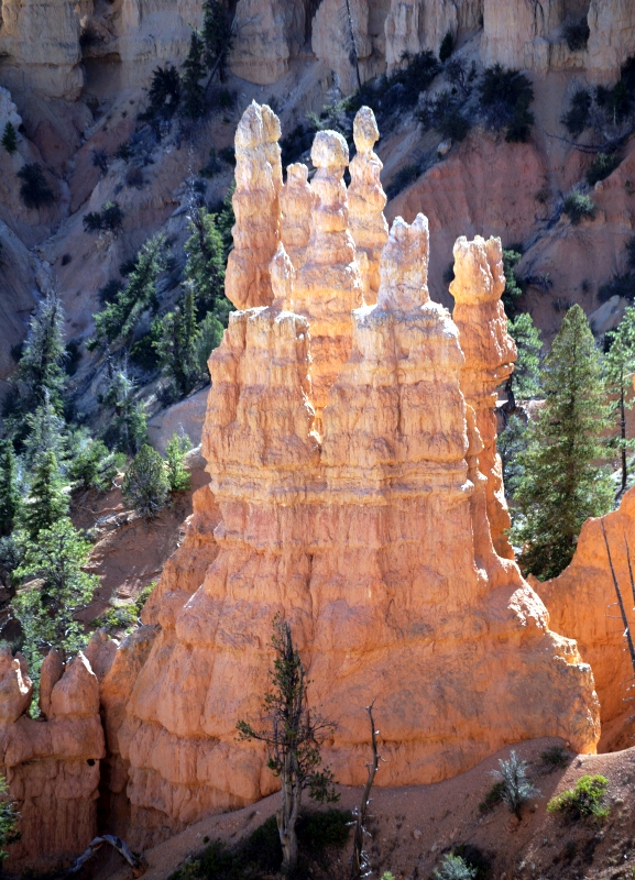 Immer wieder fällt das Wort "Canyon". Man könnte glauben, dass man das leid wird. Aber das ist überhaupt nicht der Fall, denn jeder der in Süd-Utah gelegenen Parks hat seinen eigenen Charakter und seine besonderen Reize. Bryce ist auch keine richtiger Canyon, sondern eher eine Canyonkante. Das Gegenstück am anderen Ufer fehlt also. Das liegt daran, dass an einem Riss der Erdkruste ein Teil der Sandsteinschicht angehoben und später zu diesem Schauspiel ausgewaschen wurde. An der Kante entstand über die Jahre der Bryce-"Canyon". Zwei Tage verbringen wir im Bryce-Canyon und wandern durch und entlang von Felstürmen und Sandsteinformationen. Aussichtspunkte und Wanderwege haben wir im Bryce interessant kombiniert. Die Farben der verschiedenen Sedimentschichten und die genialen Formen von Brücken und Felsspitzen lassen sich eiegntlich nur live wahrnehmen. Das konnten wir an zwei Wandertagen erleben. Vermutlich ist dieser Abschnitt so kurz ausgefallen, weil für diese außergewöhnliche Landschaft einfach die Worte fehlen ...