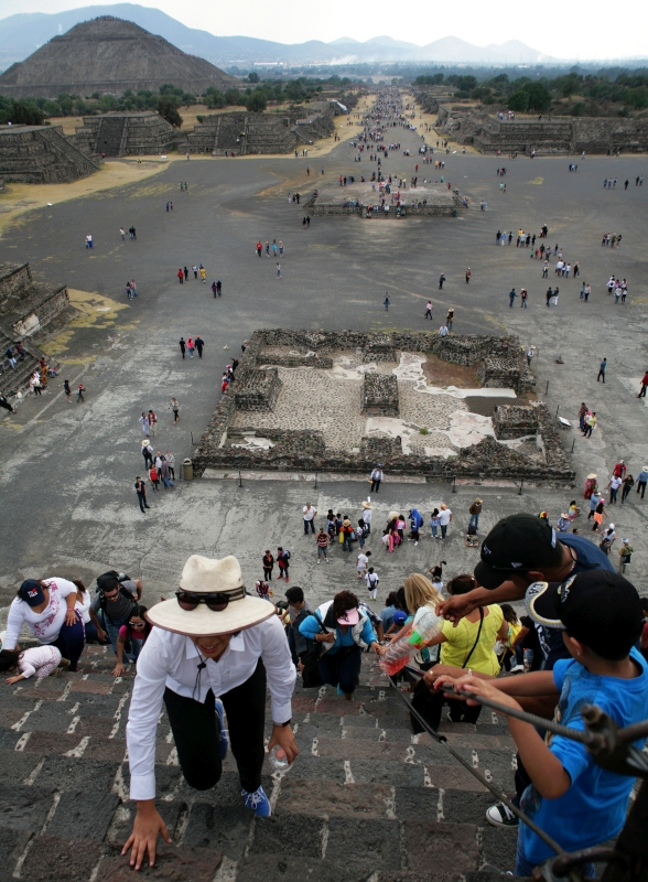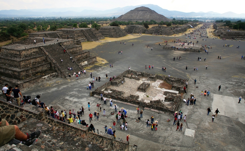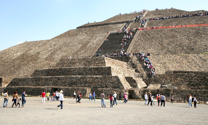 Der Blick herunter von der Sonnenpyramide ist einmalig, genau wie der Blick entlang der "Straße der Toten", der die Mondpyramide immer wieder anders erscheinen lässt. Man ahnt, welche besondere Bedeutung letztere damals hatte.