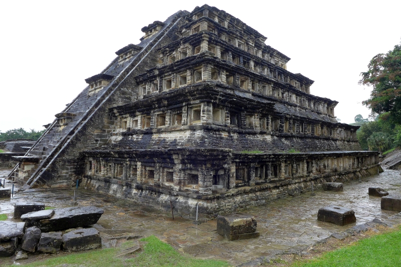Die besonders berühmte Nischenpyramide haben wir übrigens sicherheitshalber mal nachgezählt - auf 365 Nischen (die Tage im Jahr) sind wir nicht gekommen. 22-19-16-13-10-7- und dann ganz oben 5(!) Nischen (minus drei, häää !?!) finden wir in den einzelnen Stufen. Das sind 92 Nischen mal vier Seiten. OK, die Vorderseite wirkt so, als sei dort erst nachher der Aufgang hinzu gebaut worden. Also vielleicht doch weniger Nischen! Aber dann viel weniger als 365! Die Erklärungen sind dürftig und die Tafeln verblichen. Doch 365 Nischen an dieser Pyramide zu erkennen braucht bestimmt jede Menge Tequilla, der ja hier quasi unbegrenzt zur Verfügung steht!