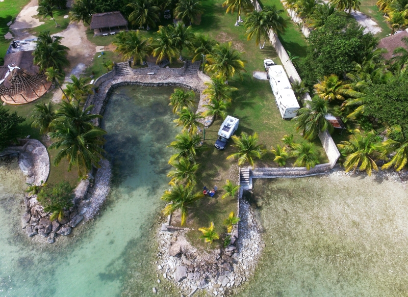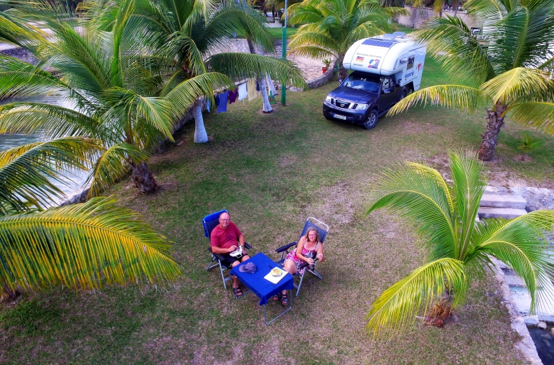 Auf einem wunderschön am Meer gelegenen Campingplatz bei Chetumal erledigen wir allerhand Papierkram. Angebote für die Verschiffung nach Südamerika müsssen geprüft und Vorbereitungen für die Grenzübertritte in den mittelamerikanischen Staaten getroffen werden.