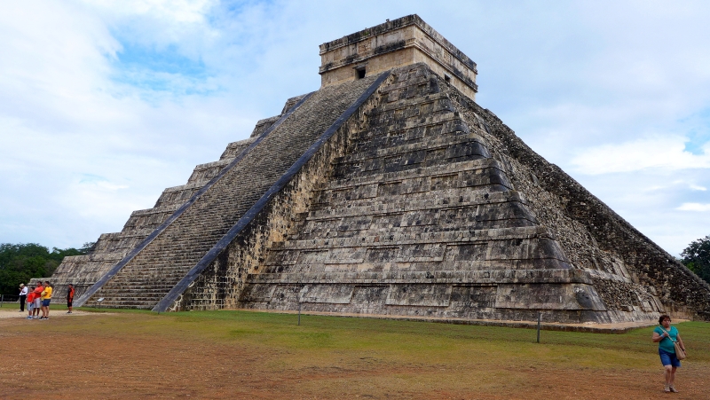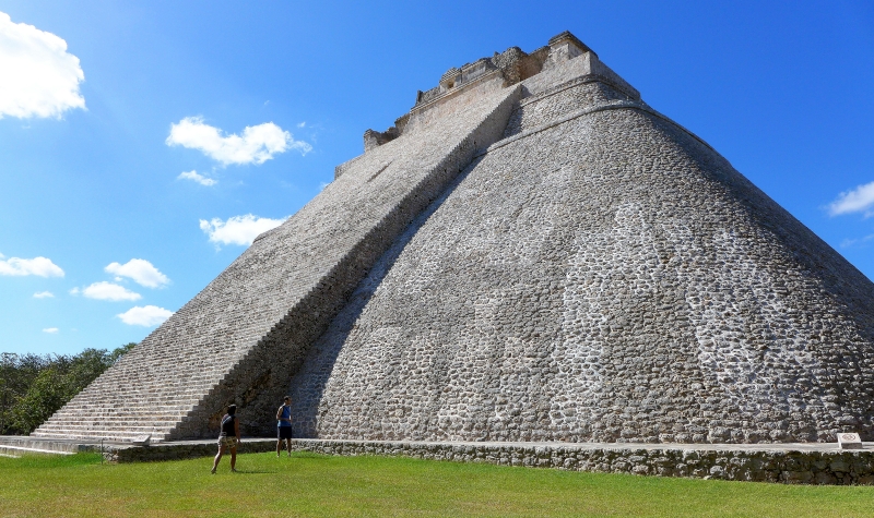 Obwohl es nun schon wieder eine Pyramidenstadt ist, bringt die Besichtigung von Chichen Itza wieder neue Ansichten. Aufgrund der Lage nahe zu der Touristenküste, ist es die am zweithäufigsten besuchte antike Stätte Mexikos. Hier sind es die vielen unterschiedlichen Reliefmotive aus Sandstein an den Bauwerken, die uns besonders auffallen. Plötzlich setzt ein heftiger Nachmittagsplatzregen ein. Alle Besucher sind sofort durchweicht, nach einer Viertelstunde ist der Spuk vorbei und die Sonne kommt wieder heraus.