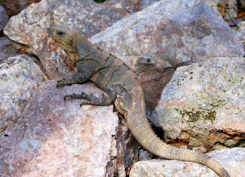 Wir sehen eine gut restaurierte Ausgrabungsstätte, die sich im Charakter von den bisher besuchten Orten wieder deutlich unterscheidet. Neben dem Ruinenkram, zeigen sich uns aber auch Nasenbären und Echsen.