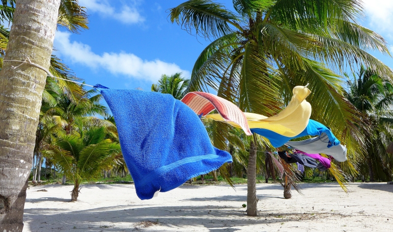 Wenige Kilometer weiter liegt ein Palmenstrand mit weißem Muschelsand und lauter Kokosnüssen. Dort verbringen wir einen faulen Tag und üben das Ernten, Öffnen und Verarbeiten von Koksnüssen.