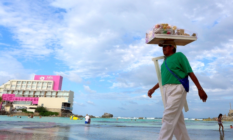 In Cancun treffen wir auf eine moderne Stadt mit internationalem Publikum, die so ganz unmexikanisch auf uns wirkt. Gepflegte Lokale und Straßen gibt es hier, damit der Tourismus blüht und Geld einbringt. Dafür ist alles erheblich teurer als in den anderen Teilen Mexikos. Wir besuchen die "Isla des Mujeres" (Fraueninsel), wo es mit dem Tourismus genauso aussieht. Für den Amerikaner von Welt werden ganze Flotten von Golfkarren vorgehalten. Der Amerikaner geht eben nicht gerne zu Fuß und in Cancun schon gar nicht! Dafür ist der weiße Korallensand eine Wucht. An der Lagune von Cancun reihen sich die modernen Hotels. In der Lagune leben Krokodile, daher stehen überall Schilder "Krokodile füttern verboten" (man hat ja eh nur zwei Versuche). Wir suchen etwas Abstand von so viel Trubel.