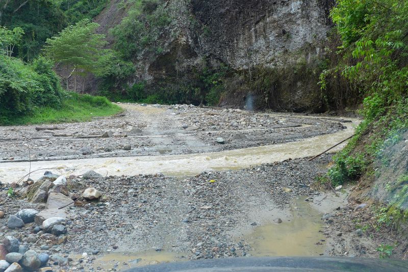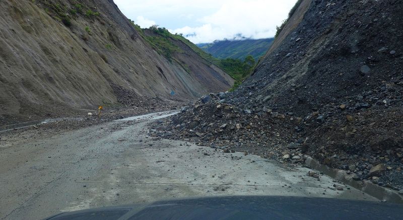 Bis Vilcabamba im Süden Ecuadors ist die Straße frei, danach kommen die ersten Erdrutsche und Plattformabbrüche der asphalierten Straße. An zwei Stellen ist die Straße komplett weg. Zum Glück sind Arbeiter vor Ort, die trotz des Regens eine Schlammpiste neben der Fahrbahn eingerichtet haben. Trotzdem wäre ein Abschnitt davon ohne Allrad für uns unpassierbar gewesen. Das dürfte sich aber schnell bessern.