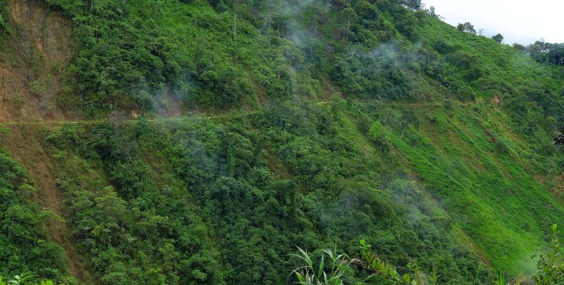Über die PE5N geht es dann einige Zeit über eine meist ganz ordentliche Straße nach Huanuco, das wir 5 Tage nach Vilcabamba erreichen. Unterwegs sehen wir Reisterrassen, Reisfelder, Kaffee- und vor allem Kakaoplantagen; Bananen und Mais sowieso. Für einen knapp 100 Kilometer langen Abschnitt ohne Asphalt, sollte man an sich fast einen Tag einplanen. Dessen nördliche Hälfte haben wir in deutlich schlechterer Erinnerung als den südlichen Teil. Ob und wo auf diesem einsamen Stück zwischen dem Kakao noch andere "Nutzpflanzen" versteckt wachsen, entzieht sich unserer Kenntnis, doch auf der Fahrt bleibt genug Zeit für Gedankenspiele.