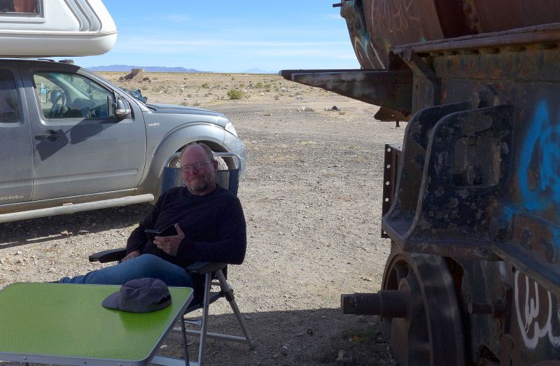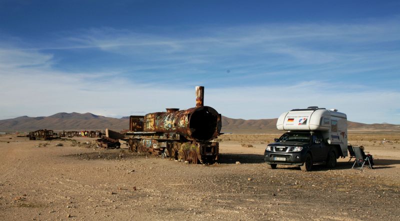 Auf dem südwestlich der Stadt gelegenen Dampflokschrottplatz mit Wüstencharakter angekommen haut es einen allerdings aus den Socken. So viele vor sich hin rostende Dampfloks haben wir noch nicht an einem Ort gesehen! Alles frei zugänglich und damit ein Spielplatz für Groß und Klein! Der Ort zieht uns so in seinen Bann, dass wir gleich dort übernachten.