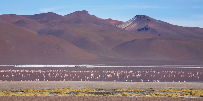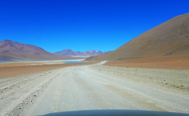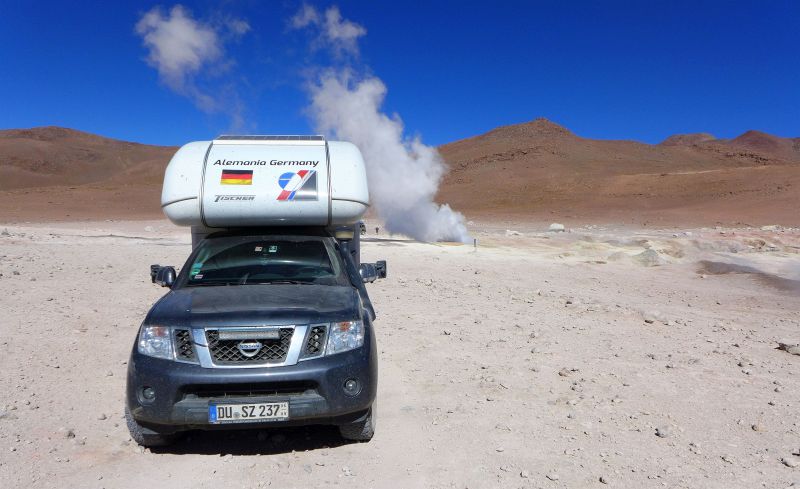 Die vielen Waschbrett- und Offroadkilometer haben sich für uns aber reichlich gelohnt. Farbige Lagunenseen mit unzähligen Andenflamingos, das Geysirfeld "Sol de Manana", wo man aufpassen muss, dass man nicht in den Geysir oder in den Schlammtopf fährt und vor allem die einzigartige Bergkulisse. Ungewöhnlich dagegen die Zollabwicklung. Die Fahrzeugausfuhr macht man nicht an der Grenze, sondern man muss zwischendurch auf der Route zu einem Zollposten auf 5033 Metern Höhe an einem kleinen, privaten Boraxwerk abzweigen. Sagt einem keiner, da man muss sich vorher schlau machen.