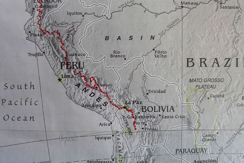 Nach dem Titicacasee geht es zügig weiter über das Altiplao nach El Alto bzw. La Paz, früher eine einzige Stadt, nun aufgeteilt. Der erste Blick in den Stadtkessel hinein ist schon mal eine Wucht!Wir wollen einkaufen und landen plötzlich in den engen Gassen der Altstadt. Ein übersehener Topes beschert uns im Vorratsschrank eine Menge Arbeit.